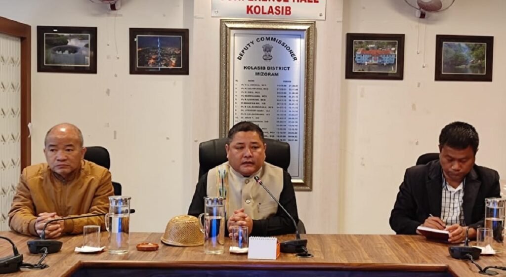 Vawiin khan Kolasib DC Conference Hall ah Digital Agricultural Mission hnuaia Aerial Drone Survey of Agricultural Land chungchangah Meeting neih a ni a. He hun hi Kolasib DC, Pu Robert C Lalhmangaiha chuan kaihruaiin Agriculture leh a kaihhnawih Department aiawhte an kalkhawm a ni. Thutkhawmna ah hian DC chuan Digital Agriculture chu a hming atang ringawt pawh in a pawimawh zia leh tunlai khawvel thiamna sang zel te ei leh bar tharchhuahna kawnga hman tangkaina pawimawh tak a ni dawn tih a lang nghal a ni, a ti. Kolasib District ah pawh kawng hrang hrangah chhawr tangkaina a awm dawn thu sawiin, Kolasib District chhung ngei a oil palm te,fishery te, arecanut te, leilet buh chin na ah te leh hmun hrang hrang te Drone in survey a nei tur chu kan dinhmun chiang zawka inhriat nan leh hmasawwnna tur atan a pawimawh dawn hle a ni, tiin, rah tha a chhuah ngei a beisei thu a sawi.