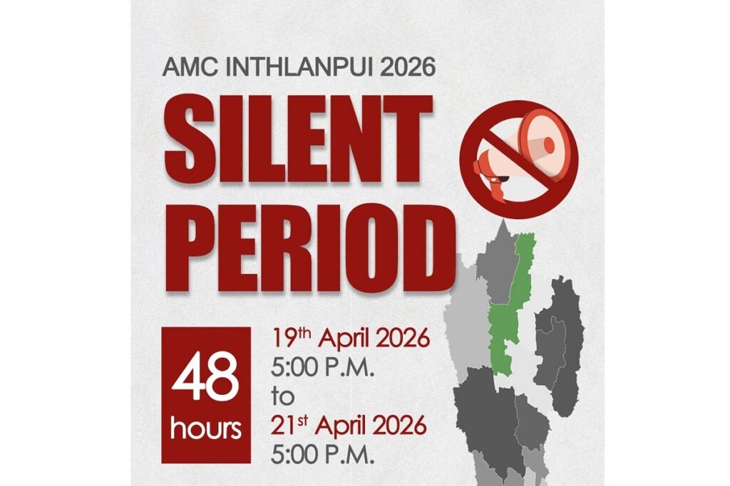 State Election Commission chuan inthlan campaign phal loh hun ‘Silent Period ‘ puangin hei hian nimintlai dar 5 atanga vote thlak zawh hun April ni 21 tlai dar 5 thleng a huam ang. Hemi chungchang a sawifiahna-ah State Election Commissioner Dr H. Lalthlangliana chuan, Vote thlaktuten tuma chim buai lova zalen taka rilru an hman theih nan Silent Period hi puan a nih thu sawiin, Political Party te tan hun rei tak campaignna hun hawn ani tawh a, vote thlak dawn hnaite hi chu Voter te chan pual, an duhthlanna felfai an siam theihna atana inbuatsaih hun anih avangin Voter te chanvo liau liau-a a ni a ti a. He hun hi ti buaia campaign tum talh hi dan bawhchhiatna a nih bakah Voter-te zah lohna a ni a ti. Voter-te pawhin anmahni hmin tuma la campaign ru fo te chu Voter te zahlohna, anmahni ngaineptu an ni tih hrethiama an lo dawnsawn loh thiam a ngai a ni a ti a. Political Party zawng zawng te chu Silent Period ngai pawimawha voter chanvo zahthiam turin a ngen a ni.