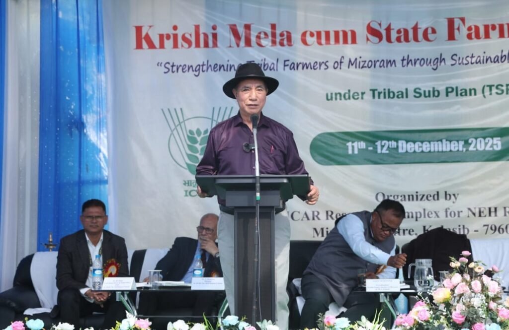 Vawiin khan “ICAR Research Complex for NEH Region, Mizoram Centre, Kolasib in December ni 11-12, 2025 chhung awh Tribal Sub Plan (TSP) hnuaia ‘Krishi Mela cum State Farmers Workshop’ hawnna inkhawm a buatsaih chu Pu Lalduhoma, Mizoram Chief Minister chuan a hmanpui. “Tlangram loneih dan thiamna (technology) tlo hmanga Mizoram loneitute tihchak- Strengthening Tribal Farmers of Mizoram through sustainable Hill Agriculture Technologies” tih thupui hmanga Krishi Mela cum State-Level Workshop neihah hian Khuallian, Pu Lalduhoma, Chief Minister chuan thu sawiin, Mizoramah hun rei tak chhung lo neih dan phung pangngai (jhum cultivation) kan lo hman tawh piahlamah , a tlo zawk leh science thiamna hmanga lo neih dan thar (sustainable, science-based farming) kalpui a tul thu a tarlang a. Chief Minister chuan a lo neih (jhum) chu Mizo hnam nunah thuk takin bet tlat mah se, leilung chereu zel leh sik leh sa inthlak danglam (climate change) avangin leh kan hmakhua a ngelngheh zawk nan technology changkang zawk hman a tul tawh a ni, a ti. Chief Minister chuan Sorkar flagship programme ‘Banakaih- Handholding Scheme’ chungchang sawiin, hei hian eizawnna bul tan thar tumte hnenah loan hmangin tanpuina a pe a, loneih leh sumdawnna bul lo tan tawhte tan ‘ CM special package’ te siam sak an ni, a ti a.