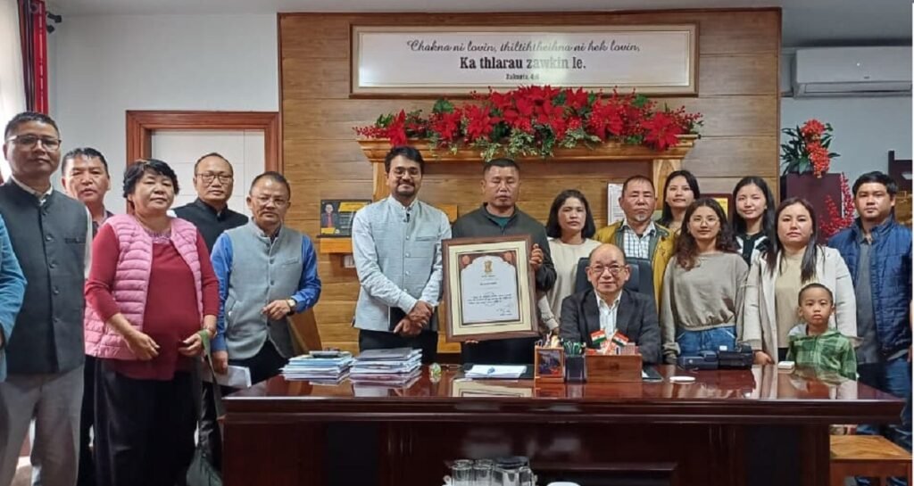 Vawiin khan Ministry of Home Affairs, Govt. of India atanga mi huaisen chawimawina ‘Jeeven Raksha Padak Award 2025’ dawngtu, Pu Laltlanzova, Tlangsam, Champhai District chu lawmman hlanna leh chawimawina hun, Home Minister, Office Chamber, MINECO-ah hman a ni a; Home Minister Pu K. Sapdanga chuan he Award-in a kentel chawimawina tangkapui, citation leh pawisa fai 1,00,000/- a hlan a ni. Home Minister Pu K. Sapdanga chuan thu sawiin ‘mizote’ n kan ngaihhlut em em chu mi huaisente an ni’ a ti a; pi leh pute hunlai atang tawha kan thupui ber pakhat pawh ‘thian chhan thih ngam’ tih a nih thin thu sawiin, tunlai khawvelah hetianga mi dangte nunna chhan nana mahni nunna thap ngam, mi huaisen kan nei leh, India ram pum huap chawimawina dawng thei kan nei hi a lawmawmin a ropui takzet a ni’ a ti a, thangthar lo awm lehzel turte tan pawh entawntlak tak a nih thu sawiin thalaite pawhin entawna, thian chhan thih ngam rilru chawinung thar leh theuh turin a sawm bawk a ni.