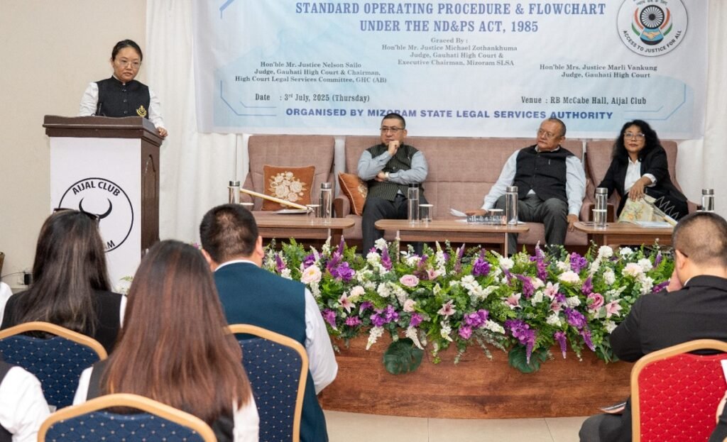 Vawiin khan Mizoram State Legal Services Authority (MSLSA) chuan The Narcotics and Psychotropic Substances Act (NDPS Act), 1985 hnuaia ruihhlo siam, zawrh, hralh leh hman sual kaihhnawih thubuai kalpui dan inkaihhruaina bu, ‘Bi- lingual Standard Operating Procedure and Flowchart under the ND&PS Act, 1985’ tlangzarhna hun chu RB McCabe Hall, Aijal Club-ah an hmang a. He tlangzarhna hun hi Justice Michael Zothankhuma, Gauhati High Court Judge, MSLSA Executive Chairman ni bawk chuan hmanpuiin, SOP leh Flow Chart-te a tlangzarh a ni.