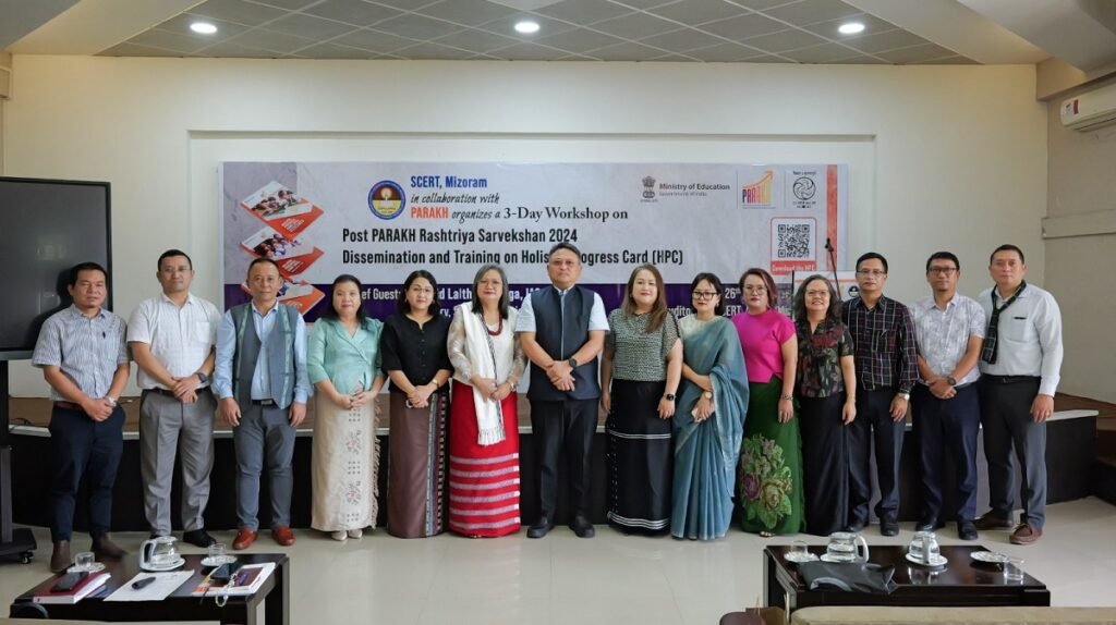 Vawiin khan SCERT Auditorium-ah ni thum awh tur Post PARAKH Rashtriya Sarvekshan 2024 Dissemination and Training on Holistic Progress Card (HPC) chu hawn a ni. December 4, 2024 khan India ram pumah Ministry of Education hmalaknain Educational Achievement Survey lian tham, tun hma lama National Achievement Survey tih thin, tuna PARAKH Rashtriya Sarvekshan (PRS) 2024 tih tak chu neih a ni a, Mizoramah pawh school thlan bik 1,058 ah pawl 3, pawl 6 leh pawl 9 zirlai te tan neih a lo ni tawh a ni. He PRS 2024 hi NEP 2020-in a tumte zinga pakhat tihhlawhtlinna atana beihpui thlakna niin, rampum huapa zirlaite thiamna kawng hrang hrang tehna tura duan a ni.