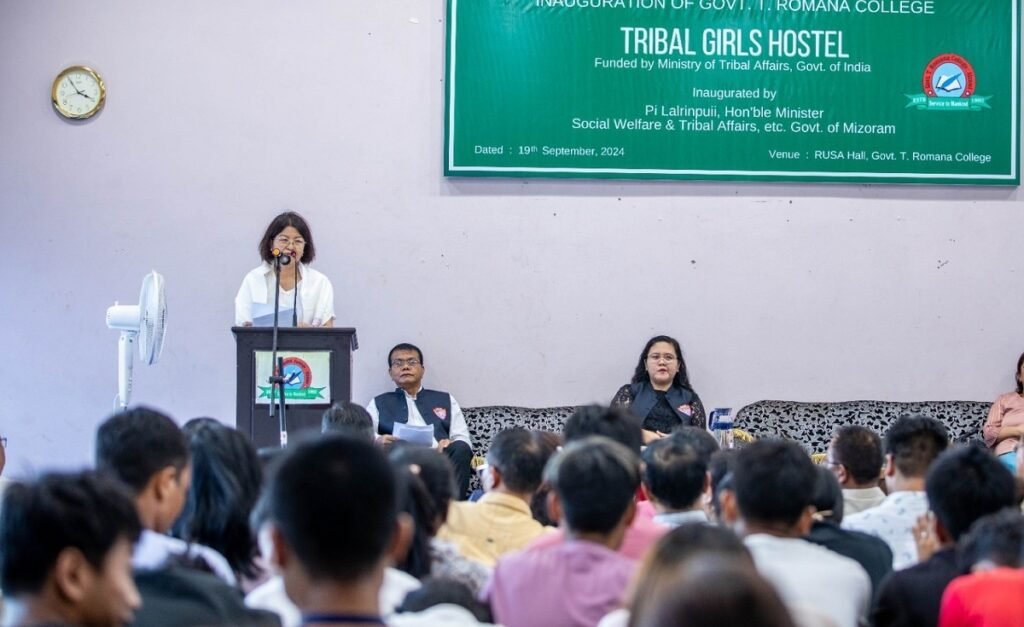 Vawiin khan cheng nuai ₹200 senga sak Govt. T.Romana College, Tribal Girls’ Hostel building thar chu Pi Lalrinpuii, Social Welfare & Tribal Affairs Minister chuan khuallian niin a hawng. Tribal Girls’ Hostel hi Gov’t. T. Romana College Campus thlang, ITI venga college ramah sak a ni. Building thar hawnna inkhawm tawi hi Pu R. Lalremliana, Vice Principal chuan a kaihhruai a ni.