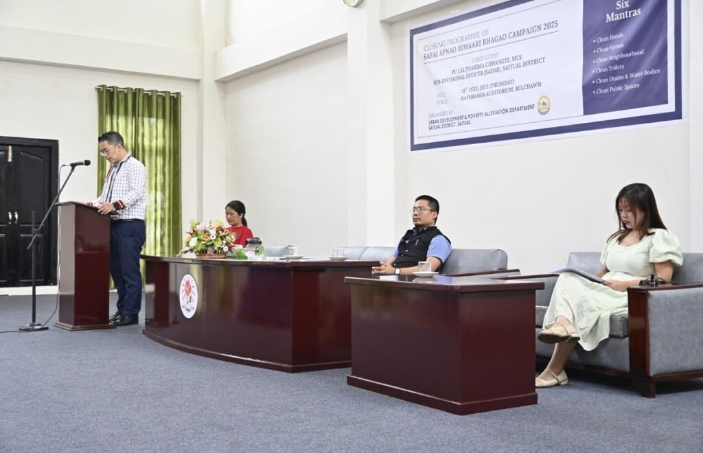 Vawiin khan Kaphranga Auditorium, Rulchawmah, UD&PA department buatsaihin faina kawnga hmalak runpui ‘Safai Apnao Bimaari Campaign 2025’ kharna hun hman a ni a, Pu Lalthakima Chhangte, SDO (S) chu khuallian niin hun a hmanpui. He hunah Pu Lalthakima Chhangte, SDO (S) chuan thu a sawi a, faina kawnga Saitual District hma a sawn theih nana hma latu DUDO leh a thawhpuite chu fakawm a tih thu a sawi a, khawtlang hruaitu VC te pawhin tha taka an thawhpui thin avangin lawmthu a sawi nghal a ni. Khuallian chuan India rama state dangte aia faina leh thianghlimna kawnga hma kan sawn chhan chu zirtir leh kaihhruai kan nawm vang a ni, a ti a, chutih rualin hmasawnna tur tam tak kan la nei a ni, a ti.