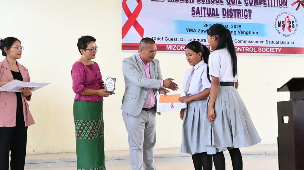 Vawiin khan Mizoram State Aids Control Society leh District AIDS Prevention and Control Committee tangkawp buatsaih District Red Ribbon School Quiz Competition chu YMA Zawlbuk, Keifang Venghlunah neih a ni a, DAPCC Chairman, District Bawrhsap ni bawk Dr. Lalngura Tlau chu khuallian niin hun a hmanpui. Vawiin quiz competition-a lawmman pakhatna latu Oxford English School chu State level-ah District aiawhin an chhuak dawn a ni.He hunah hian khuallian Dr. Lalngura Tlau chuan thu sawiin, District Red Ribbon School Quiz competition hlawhtling taka buatsaih a ni chu lawmawm a tih thu a sawi a, MSACS, DAPCC, zirlaite, zirtirtute leh nu leh pate thawhrimna rah a ni, a ti. Bawrhsap chuan Mizoram chu India ramah pawh HIV AIDS kai tamna kawngah state dang aiin kan sang hle tih a sawi a, MSACS te chu khawtlang leh kohhran te thawhpui a, tha thlah loa hma lak chhunzawm zel a tul a ni, a ti.